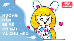 Cách vẽ và tô màu cô gái với chú mèo