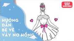 Cùng vẽ và tô màu cô gái với chiếc váy nơ hồng